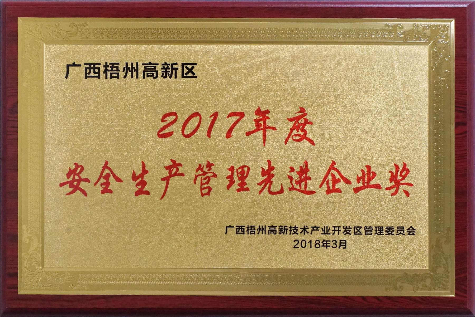 2017年度安全生產(chǎn)管理先進(jìn)企業(yè)獎(jiǎng)