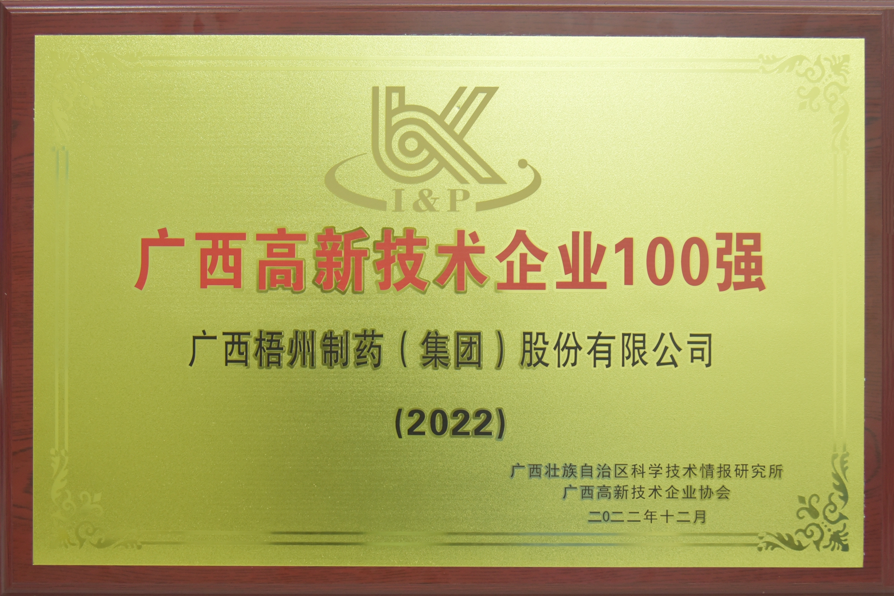 廣西梧州制藥(集團(tuán))股份有限公司獲評(píng)廣西高新技術(shù)企業(yè)100強(qiáng)【2022】