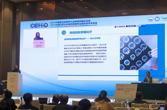 會上,中山大學(xué)腫瘤防治中心郭琤琤教授為注射用去水衛(wèi)矛醇納入《膠質(zhì)瘤化療中國專家共識》進(jìn)行詳細(xì)的解讀。她表示,去水衛(wèi)矛醇主要作用機制是由-鳥嘌呤DNA烷化,具有不受MGMT影響,對膠質(zhì)瘤細(xì)胞增殖有較高抑制率,血腦屏障(BBB)通過率較高等優(yōu)點。“去水衛(wèi)矛醇聯(lián)合放療治療具有-甲基鳥嘌呤-DNA甲基轉(zhuǎn)移酶 (MGMT)基因未甲基化啟動子的新確診的多形性膠質(zhì)母細(xì)胞瘤 (GBM)患者的開放性2期臨床研究”項目顯示:MGMT非甲基化的GBM患者中發(fā)現(xiàn)中位無進(jìn)展生存期可達(dá)9.5個月,其中27.6%患者無病生存超過1年,48.3%患者使用超過10周期。為醫(yī)師在臨床應(yīng)用中提供更多的依據(jù),有機會提高M(jìn)GMT非甲基化的膠質(zhì)瘤患者療效,增加患者生存獲益。
