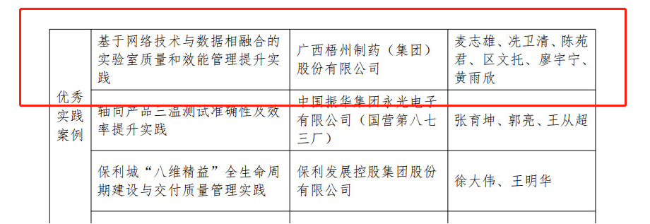 梧州制藥《基于網(wǎng)絡(luò)技術(shù)與數(shù)據(jù)相融合的實(shí)驗(yàn)室質(zhì)量和效能管理提升實(shí)踐》入選2023年企業(yè)質(zhì)量管理優(yōu)秀實(shí)踐案例