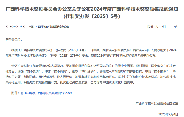 7月4日,2024年度廣西科學技術進步獎獲獎名單正式公布,廣西梧州制藥(集團)股份有限公司參與的《中藥民族藥“性-效-物”理論創(chuàng)新研究及開發(fā)應用示范》項目榮獲廣西科學技術進步獎二等獎。獲獎項目由大學院校和企業(yè)聯(lián)合完成,旨在通過創(chuàng)新的理論研究,揭示中藥和民族藥的藥效物質基礎,提升傳統(tǒng)藥物的現(xiàn)代化水平,梧州制藥作為該項目的第三完成單位,彰顯了其在中藥現(xiàn)代化研究領域的實力。