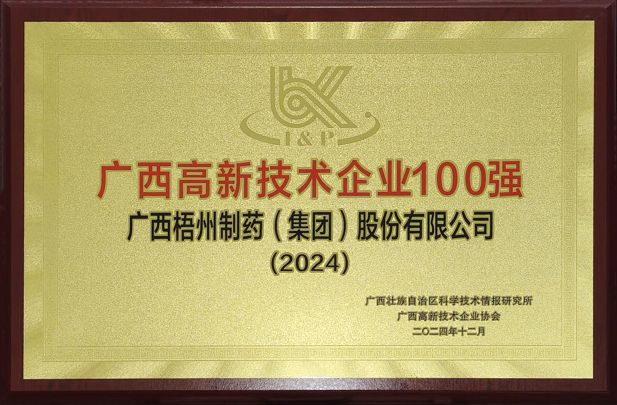 近日,標(biāo)志著“2024年廣西高新技術(shù)企業(yè)百?gòu)?qiáng)”榮譽(yù)的官方牌匾,正式送達(dá)廣西梧州制藥(集團(tuán))股份有限公司(以下簡(jiǎn)稱:梧州制藥)。這不僅為此次評(píng)選畫上圓滿句號(hào),也意味著梧州制藥成功實(shí)現(xiàn)了自2023年以來(lái)的連續(xù)兩年蟬聯(lián),充分彰顯了其穩(wěn)固的創(chuàng)新優(yōu)勢(shì)和行業(yè)競(jìng)爭(zhēng)力。